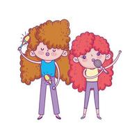 feliz dia del niño, niñas con micrófono y música maracas 1843307 Vector en Vecteezy