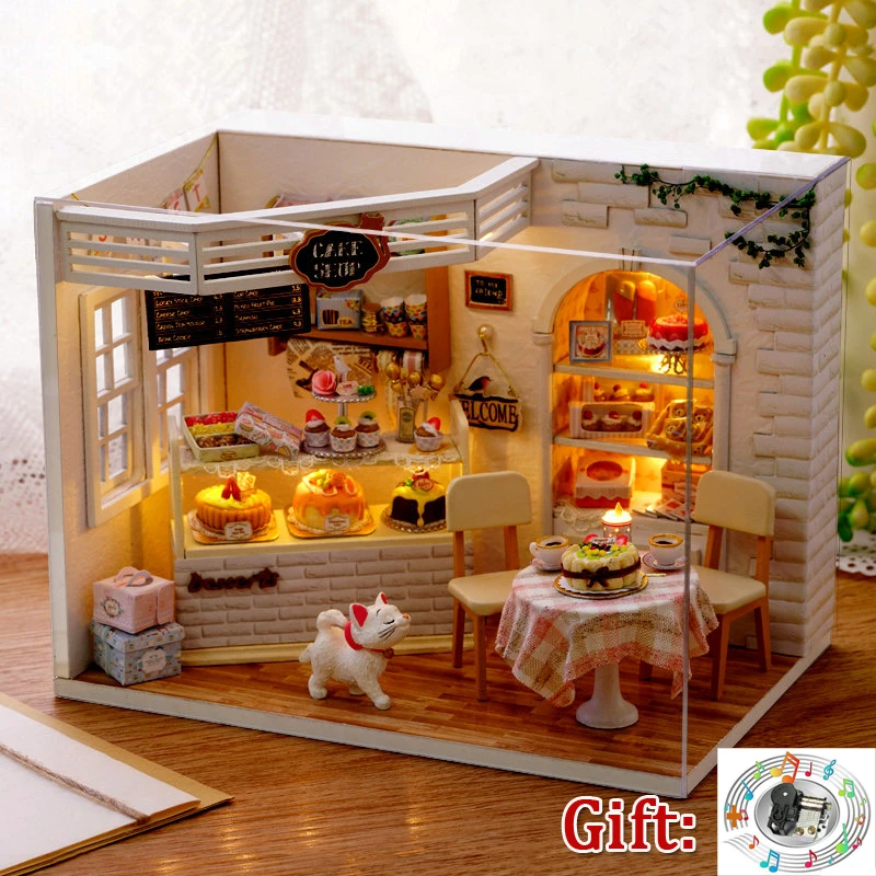 Casa De muñecas en miniatura DIY, casa De muñecas De madera, tienda De pasteles, hogar, bonito modelo De habitación, Kits De construcción, tupé| Casas de muñecas| - AliExpress