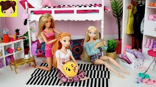 Pijamada Divertida de Frozen Elsa, Barbie \u0026 Anna en Habitacion con Literas de Muñecas - YouTube