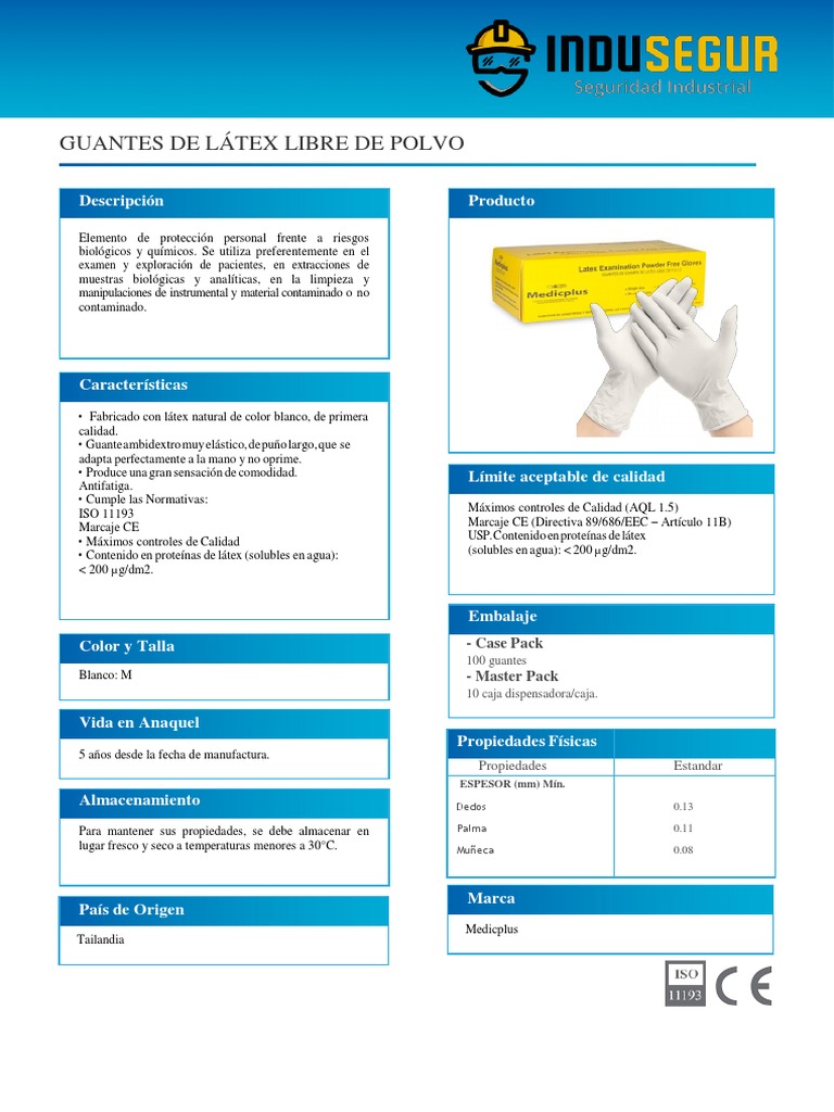 Ficha técnica Guantes de látex uso industrial, puño largo