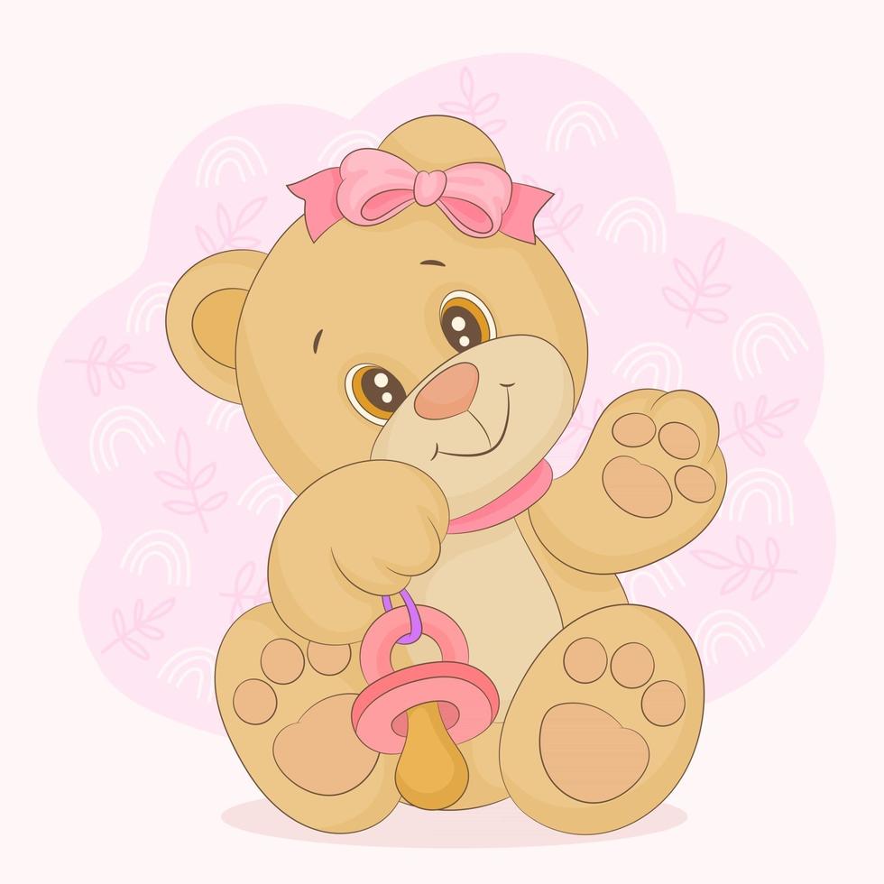osito de peluche de niña sosteniendo un chupete 4228682 Vector en Vecteezy