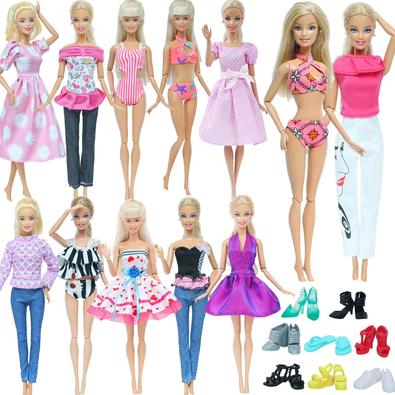 Conjunto de 5 piezas de ropa para muñeca Barbie, ropa bonita, Mini vestido, camiseta, pantalones, Bikini rosa, zapatos de tacón alto plano, accesorios para muñecas, venta al por mayor|Muñecas| - AliExpress