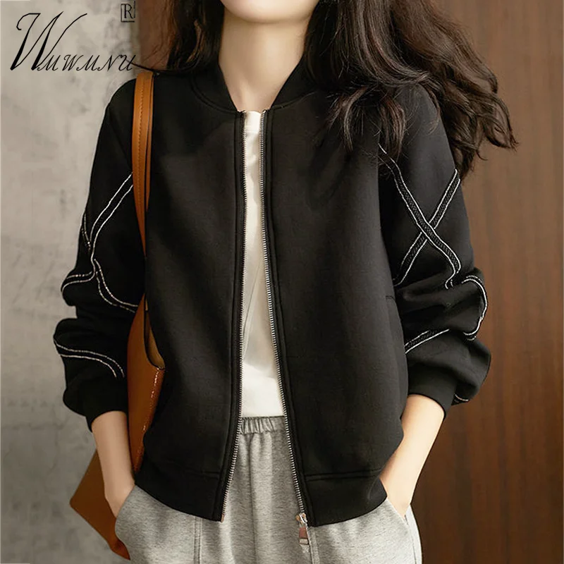 Fashion Basic Black Bomber Jackets Women Korean Elegant Office Ladies Top Outwear 2022 Spring Autumn Casual Zipper Baseball Coat - Bomber Jackets - AliExpress