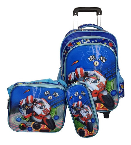 Mochila Carro Moto Carrera Varon +cartuchera+lunchera, C/luz | Envío gratis