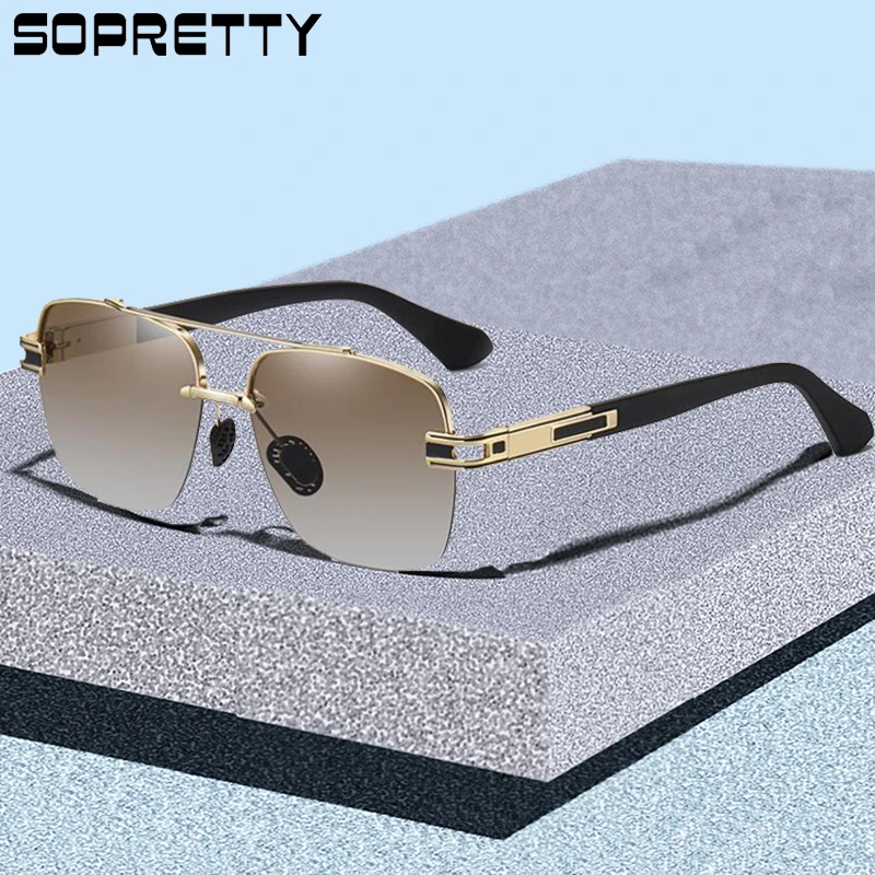 TAC-gafas de sol polarizadas de Metal para hombre, lentes con gradiente, cuadradas semimal, de gran tamaño, montura dorada, gafas de dos tonos, SA671 - AliExpress Accesorios para la ropa