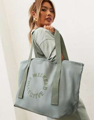 Bolso tote color salvia de lona de ASOS Weekend Collective | ASOS
