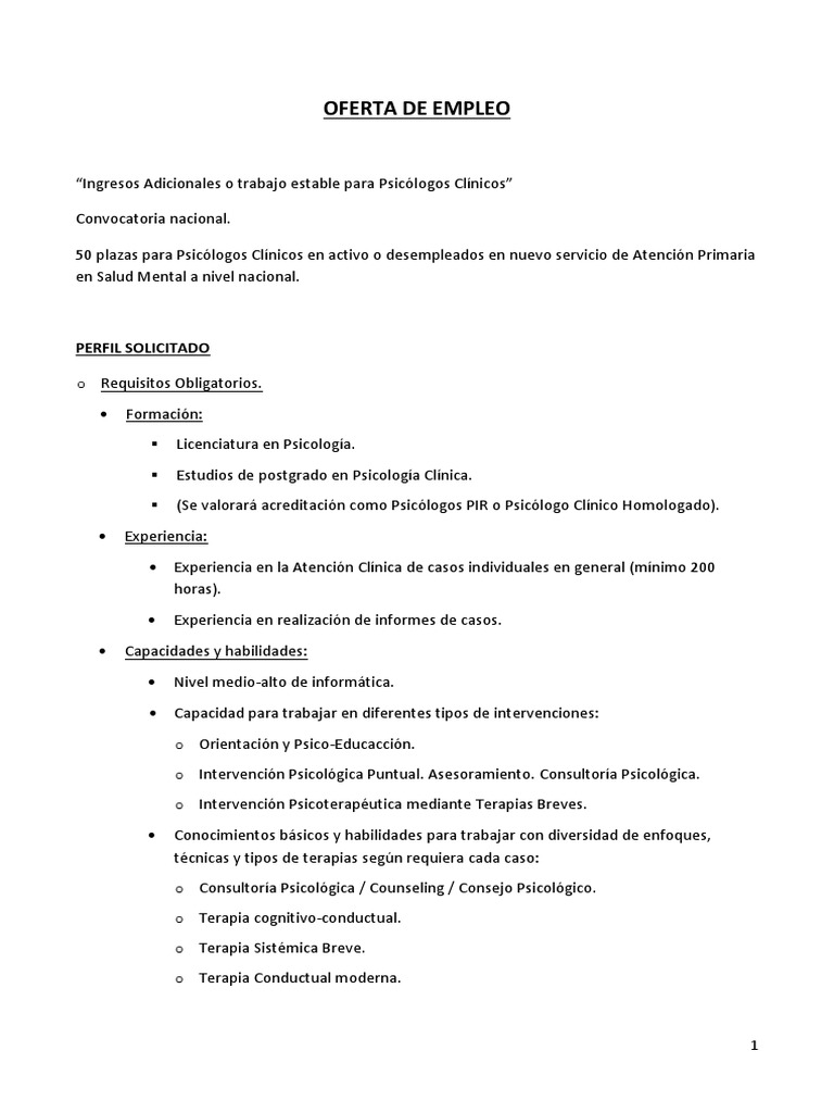 María Victoria Sánchez López on LinkedIn: #procesodeselección #Psicología #saludmental, OFERTA Psicologos Clinicos | PDF | Psicólogo | Psicoterapia, ?\u200d♀️ Psicóloga ? Bolsa de Trabajo 2021 Empleo y Vacantes Beneficios, Requisitos - YouTube, Oferta de empleo: Psicólogo/a para Santa Cruz de Tenerife - Ofertas de trabajo, becas, empleo y cursos en Canarias - Enbuscade, Vacante disponible para encargado de psicología y consejería | Instituto Nacional de Formación Técnico Profesional, Ο χρήστης SernamEG Atacama στο Twitter: \, OFERTA LABORAL - PSICÓLOGO/A - Asperga, OFERTA DE EMPLEO PSICÓLOGO - Fórum de la Discapacidad de Cuenca, Oferta de Empleo de Psicólogo/a para el Servicio a la Infancia y Adolescencia - Asociación Autismo Cádiz, OFERTA LABORAL: PSICÓLOGOS/AS – EDUCADORA DIFERENCIAL – CORMUMEL, Escuela Politécnica Nacional | Oferta Laboral – PSICÓLOGO EDUCATIVO.