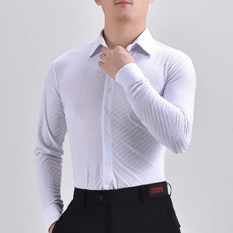 Camisa blanca y negra para hombre adulto, camisa de baile de Samba, Vals, manga larga, moderna, Top de rendimiento|Latín| - AliExpress