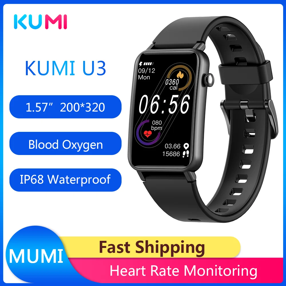 Kumi U3 blood oxygen heart rate tracker sports fitness smart watch bt5.0 IP68 waterproof smart Bracelet IOS Android universal|Smart Watches| - AliExpress