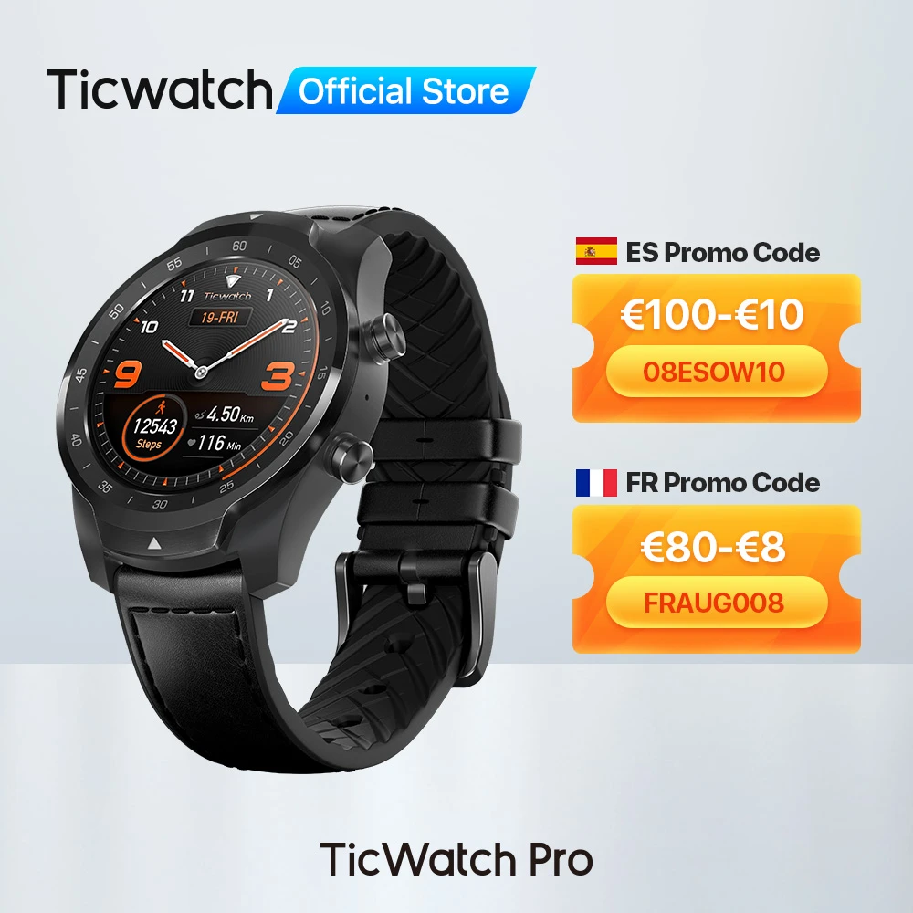 TicWatch Pro montre intelligente Version mondiale avec OS d'usure par Google pour iOS et Android NFC paiement GPS étanche Bluetooth Smartwatch | AliExpress