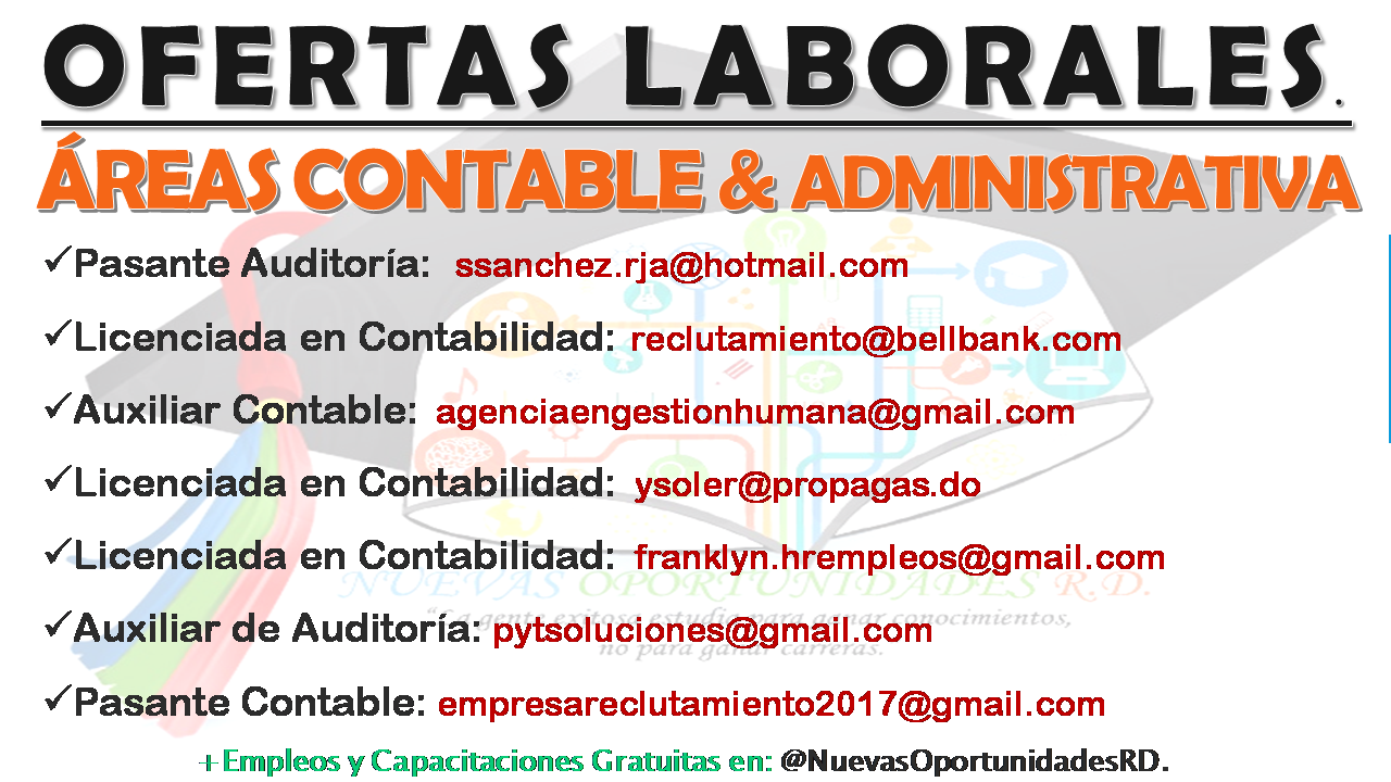 Nuevas Oportunidades RD.: OFERTAS LABORALES EN ÁREAS CONTABLES Y ADMINISTRATIVAS.